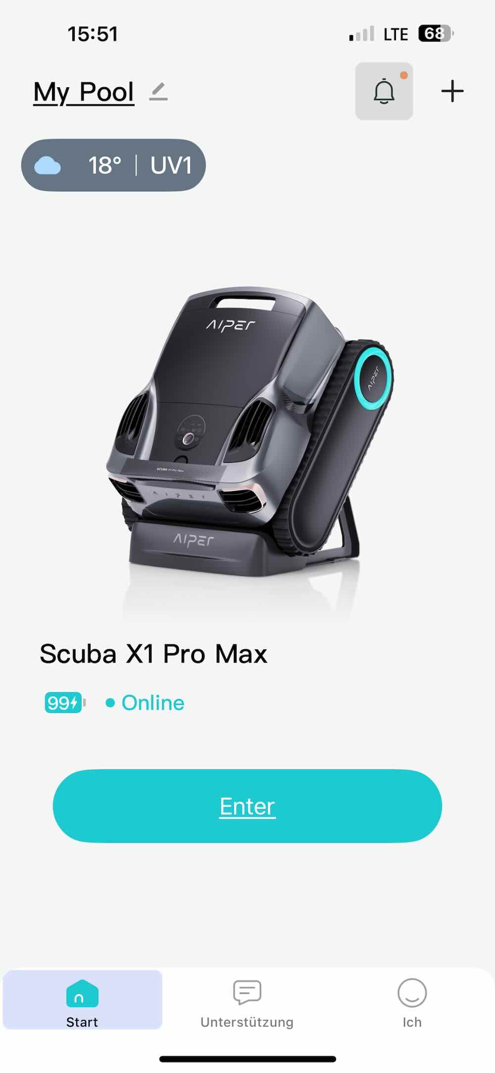 Die beiden größten Punkte, die man beachten sollte: das Gewicht (rund 15 kg) und die Bauhöhe, die in bestimmten Pools den Zugang zur obersten Stufe verhindert. Für den Testpool ist er dennoch nahezu perfekt und reduziert den manuellen Reinigungsaufwand auf ein Minimum. Für 1.999 EUR ist der Aiper X1 Pro Max erhältlich.