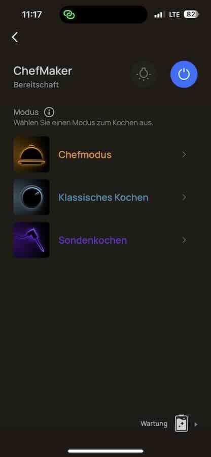 Die Bedienung erfolgt durch die Touch-Tasten an der Front, oder über das Smartphone, sofern der ChefMaker mit dem heimischen Wifi verbunden ist. Die Übertragung ist schnell und so überlegt man zweimal, ob man vom Sofa aufsteht, oder sich einfach das Handy schnappt.