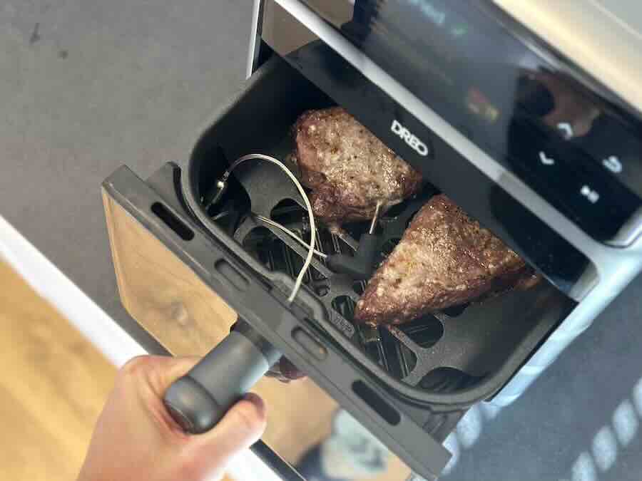 Ich würde wirklich von einer Gelinggarantie sprechen, wenn man das Thermometer im Einsatz hat. So weiß das Gerät immer wie der aktuelle Prozess ist und wie lange die Mahlzeiten noch brauchen. Man merkte auch, dass die berechnete zeit manchmal langsamer oder schneller vorbei ging, weil der Dreo ChefMaker in Echtzeit nachjustiert. Sicher ist aber: Wenn der ChefMaker piept, dann ist das Essen fertig.