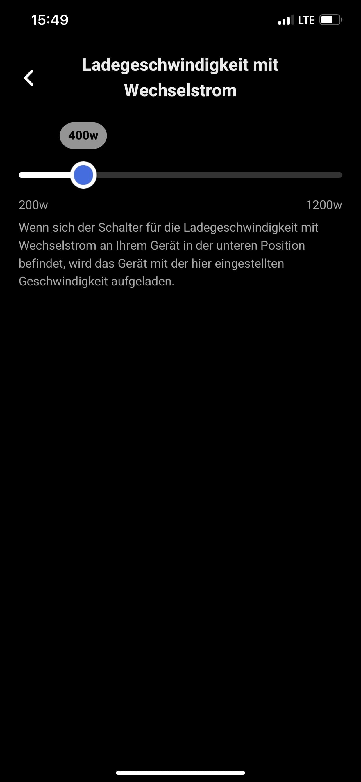 Über die App kann man die Aufnahmegeschwindigkeit auch drosseln, um beispielsweise den Akku zu schonen oder den doch etwas störenden Lüfter der Powerstation während des Ladevorgangs nicht hören zu müssen. Ideal, um die DELTA 2 über die Nacht wieder vollständig aufzuladen. Allgemein gefällt uns die Bedienung auch hier wieder sehr gut und alles funktioniert einwandfrei.