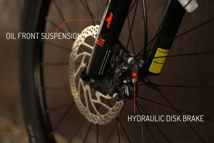 Gehen wir nun also, Stück für Stück, die einzelnen Bauteile des Rads durch. Positiv fallen zunächst die hydraulischen Scheibenbremsen auf. Eine sehr zuverlässige Technik. Der Rahmen wurde, um das Gesamtgewicht zu reduzieren, aus Carbonfasern gefertigt. In ihm versteckt sich auch der 36V Akku. Der Motor ist am Hinterrad lokalisiert.