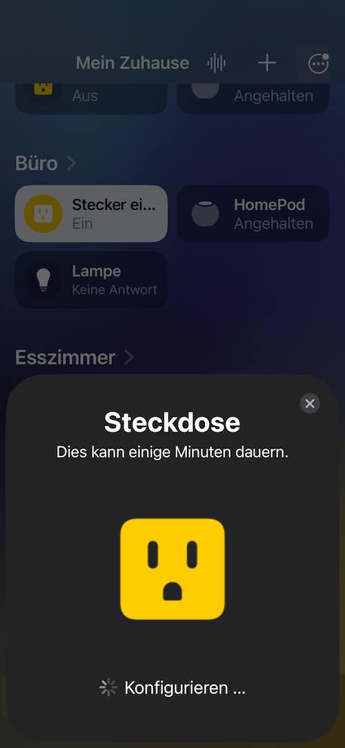 Die smarten Birnen habe ich lediglich aus der Verpackung genommen und in die E27-Fassung der Deckenlampe geschraubt. Zum Verbinden der Lampen musste ich einen QR-Code in der Verpackung abscannen; die Home-App erledigt den Rest. Lampe benennen, fertig. Was jetzt noch fehlte, war die Erstellung einer Gruppe, da ich die Deckenlampe mit nur einer Lampenbezeichnung ansprechen wollte. Beide Birnen werden in der Home-App zur Gruppe „Deckenlampe“ und schon reicht ein Befehl aus, um die Lampen synchron zu steuern.