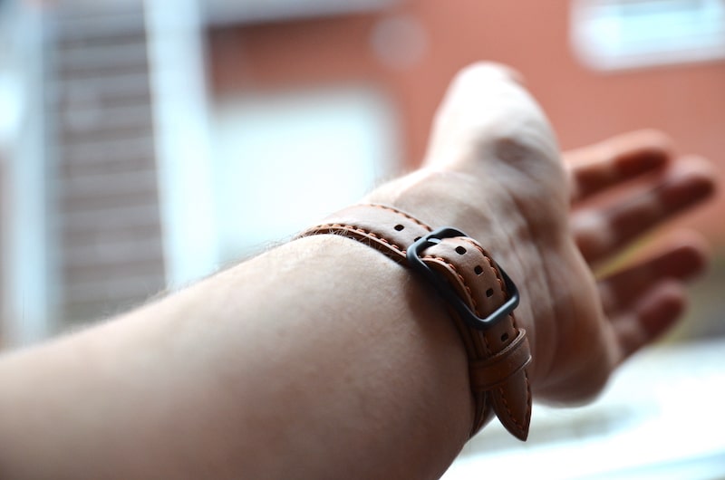 Beim Anlegen der Uhr ans Handgelenk werden wir auch hier wieder an Leder erinnert. Zunächst ist das Material nämlich etwas steif. Doch schon nach einigen Stunden Tragen, können wir feststellen, wie das Band anfängt nachzugeben. Schon nach wenigen Tagen fühlen sich die Bänder an den Handgelenken sehr gut an und haben eine schöne Form erreicht. Optisch können sie je nach Farbwahl zurückhaltend und edel oder aber auch auffallend sein.